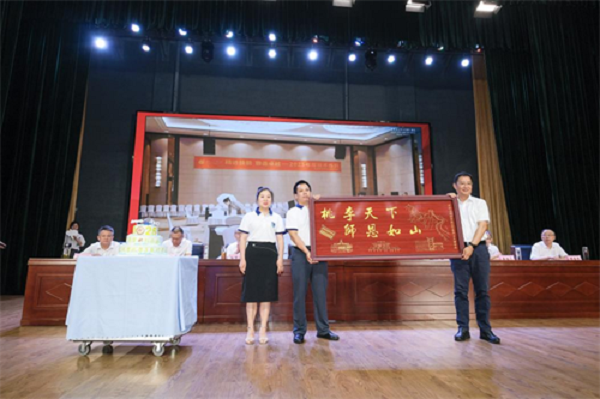 “桃李天下,师恩如山”是母校育人硕果的生动写照,诉说着学子们对老师的崇高敬仰。匾额之上,算盘凝聚财经专业特色,长城彰显旅游风华;文博馆曾映照学子们求知的眼眸,翠湖畔的亭子珍藏着青春的欢愉,教学楼承载着知识的殿堂。匾额祝福着母校巍峨永固,桃李岁岁芬芳;祝福恩师安康,广育天下栋梁。