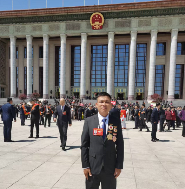 (林日云在北京人民大会堂参加全国劳动模范表彰活动)