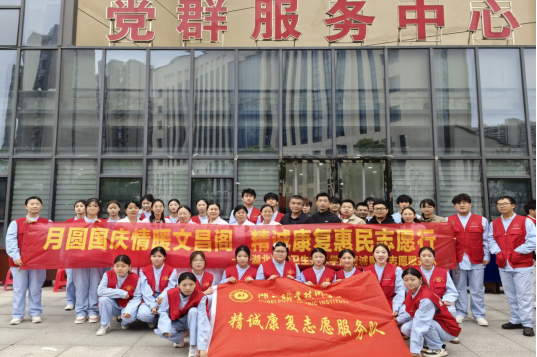(本网讯 雷珅)9月19日,我校精诚康复志愿服务队党员教师和学生志愿者合计30余人走进文昌阁社区,开展“月圆国庆,晴暖文昌阁”志愿服务活动,为社区居民送去健康关怀与节日温暖,服务居民100余人次。