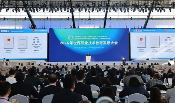 2024年世界职业技术教育发展大会21日在天津开幕。来自全球100多个国家和地区的1200余名政府官员、驻华使节、国际组织和院校代表等齐聚一堂,共探“创新赋能未来 技能塑造人生”,推动全球职业教育高质量发展。
