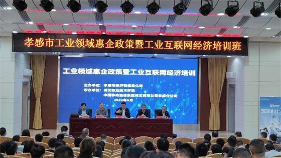 (本网讯 汪行光)5月9日,2023年孝感市工业领域惠企政策与工业互联网经济培训班在学校西区文博楼学术报告厅开班。培训班旨在加快推动制造业企业工业互联网升级,积极推进食品企业诚信体系建设,提升消费品企业开展网络营销的能力。培训班由孝感市经济和信息化局主办,大发登录官网首页和中国移动通信集团湖北有限公司孝感分公司联合承办。孝感市经信局党组成员、副局长叶剑刚,市经信局党组成员、总经济师杨杰,我校党委委员、副校长袁胜华,我校财经与旅游学院院长徐斌华,中国移动通信集团湖北有限公司孝感分公司政企部经理王显清等出席。经信部门分管负责同志、业务负责人,来自孝感市各县市区的企业代表共计130余人参加了培训,开班仪式由孝感市经信局党组成员、副局长邱鹏主持。